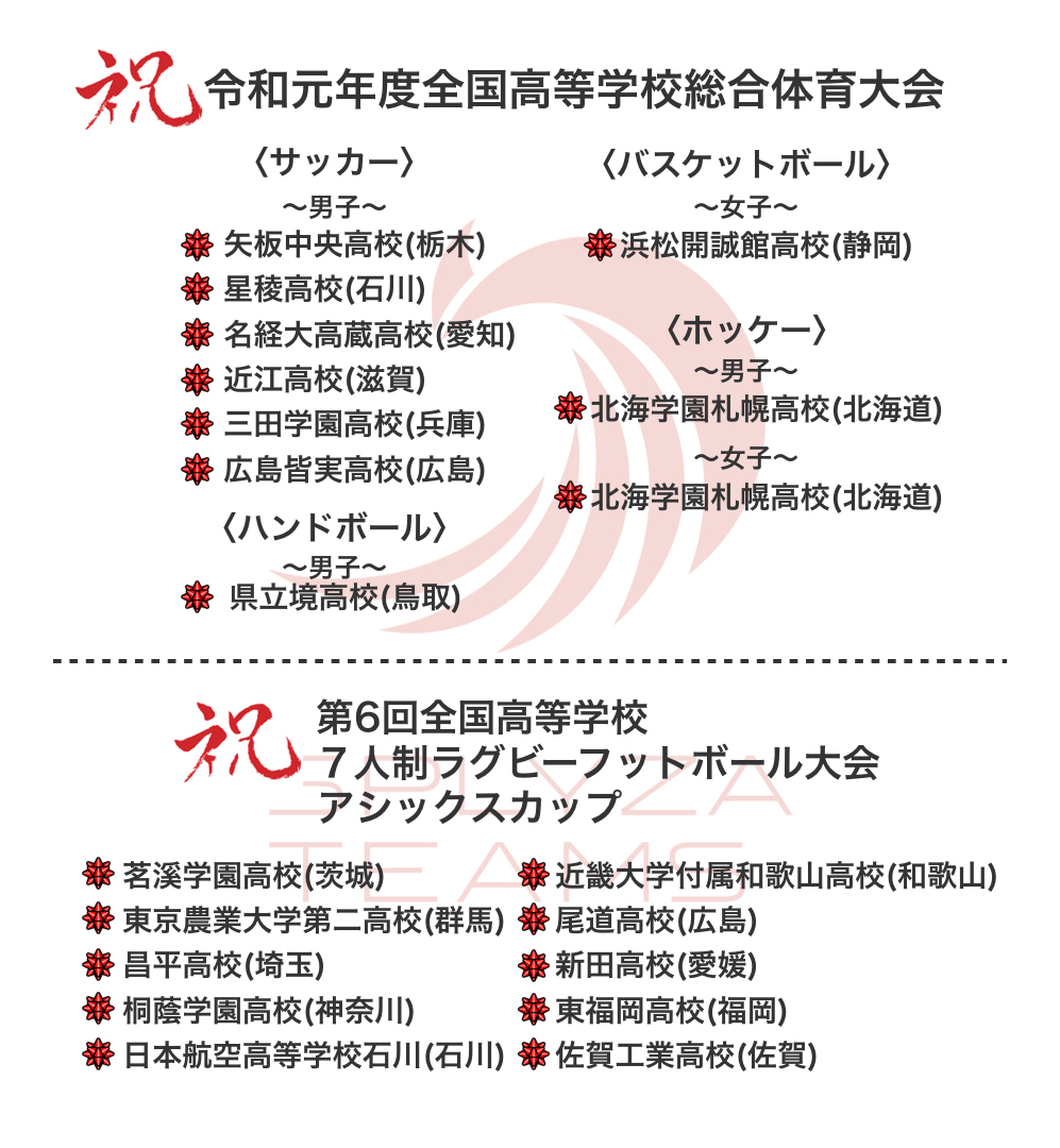 7月19日から始まるアシックスカップの全国大会、7月24日から始まるインターハイでの皆さまのご活躍を期待しております!がんばってください!!