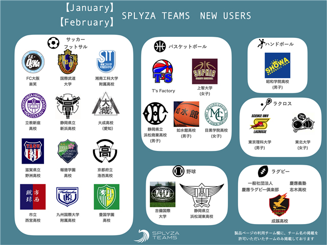 1・2月は28チームが新しくSPLYZA Teamsの仲間になりました!