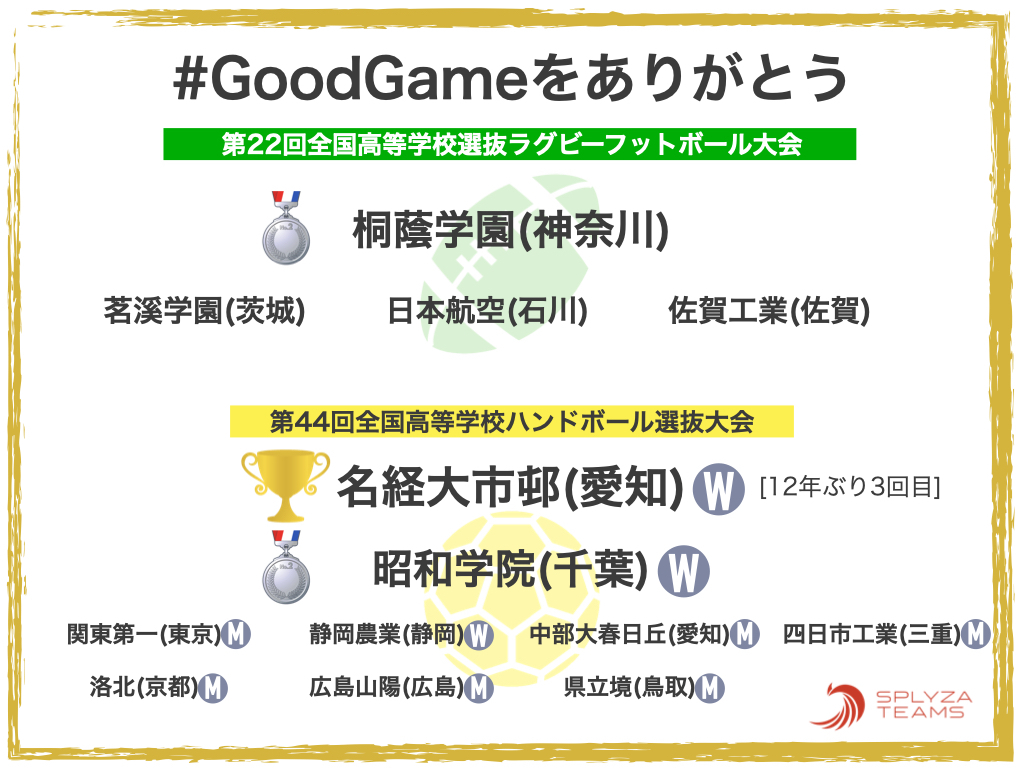 昭和学院高校様(ハンドボール)桐蔭学園高校様(ラグビー)準優勝おめでとうございます。