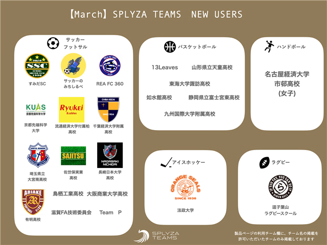 3月は30チームが新しくSPLYZA Teamsの仲間になりました。