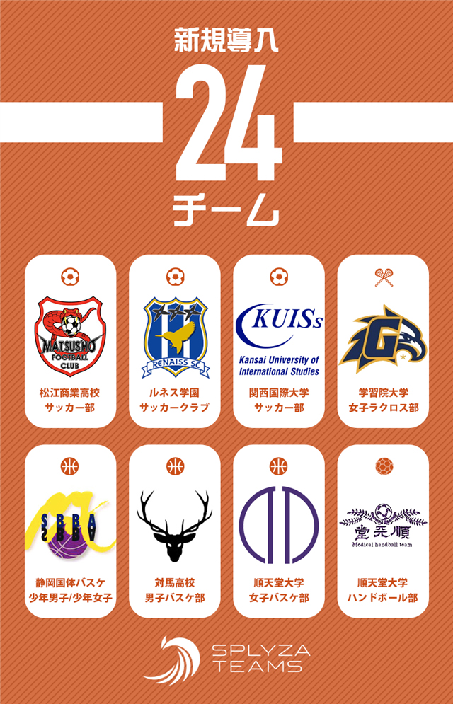 8月は24チームが新しくSPLYZA Teamsの仲間になりました。熱い夏が終わり、競技によっては新体制を迎えたチームもあるのではないでしょうか。来たる大会に向けてSPLYZA Teamsを活用し共通理解を高めましょう!