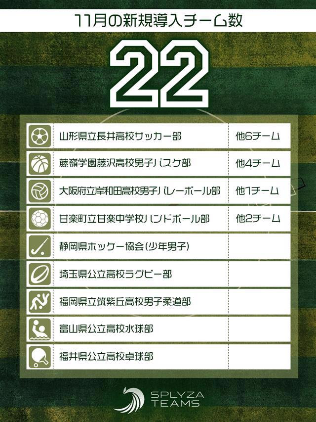 【New User】11月は22チームが新しくSPLYZA Teamsの仲間になりました。新チームになって初の大きな大会に臨むチームも多いと思います。チームの共通理解を早く高めるためにSPLYZA Teamsをご活用いただけると幸いです!