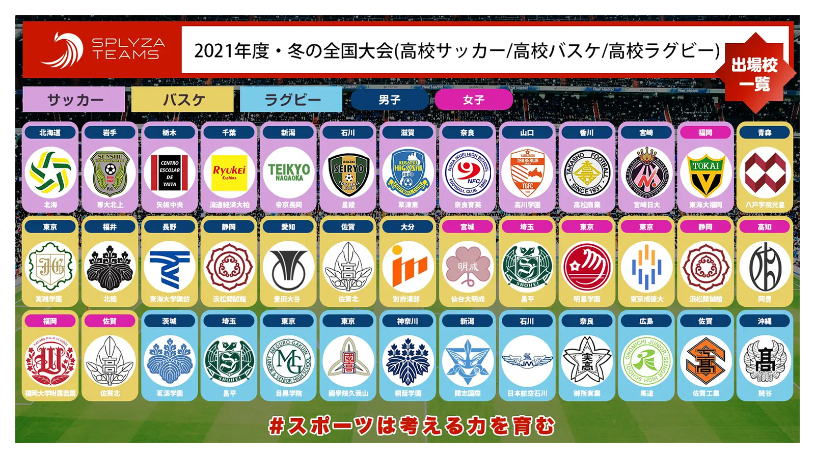2021年度のウインターカップ・花園・サッカー選手権に映像版部活ノートツール「SPLYZA Teams」を活用しているチームが7地域42チーム出場