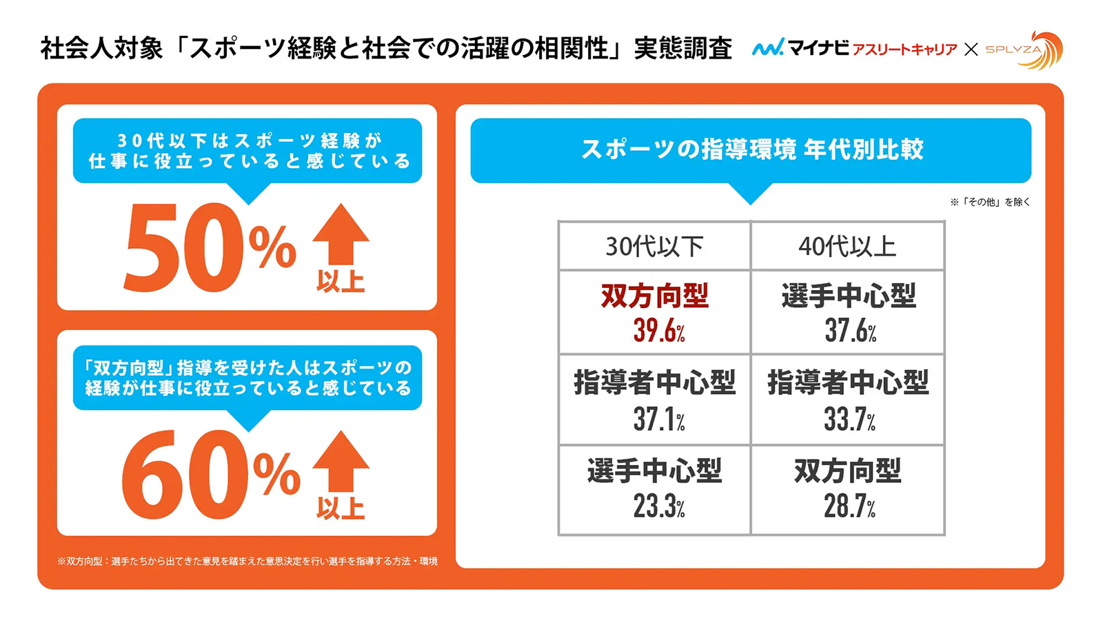 ~双方向型の指導を受けたグループは6割以上が「スポーツ経験が役立っている」と回答~
