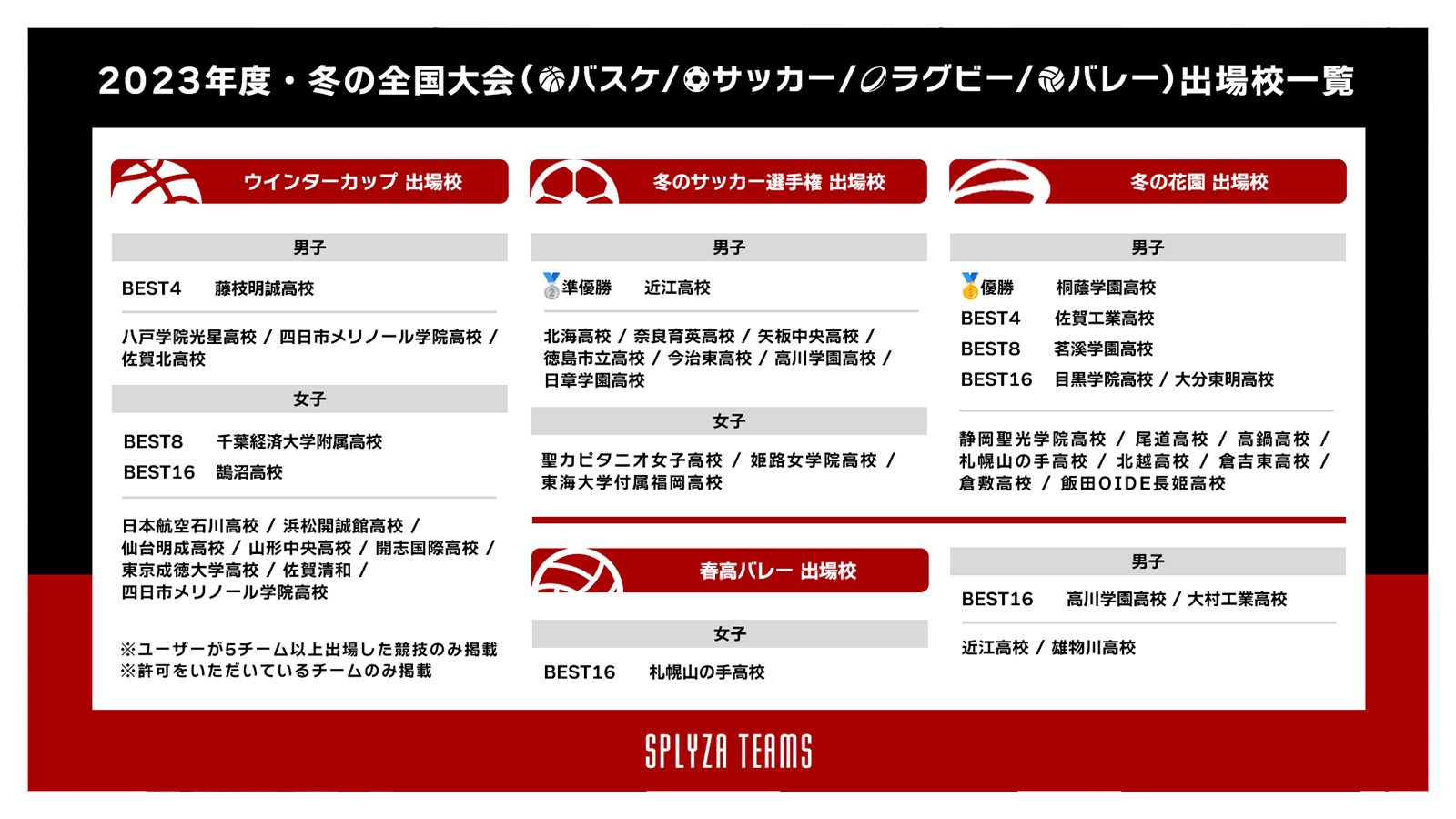 「SPLYZA Teams」を導入している合計13チームが本日、3月24日から開催される第44回全国高等学校ハンドボール大会と翌日3月25日から開催される第22回全国高等学校ラグビーフットボール大会に出場します。