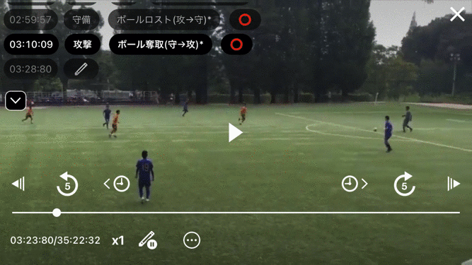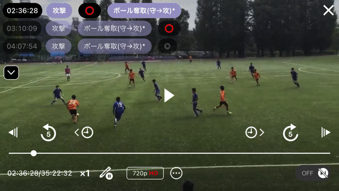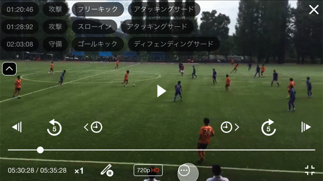 選択中のタグだけをスキップして再生できるようになりました。「次のタグへ進むボタンを押さなくても、見たいシーンを再生したい」という指導者や選手の方からのご要望にお応えしました。
