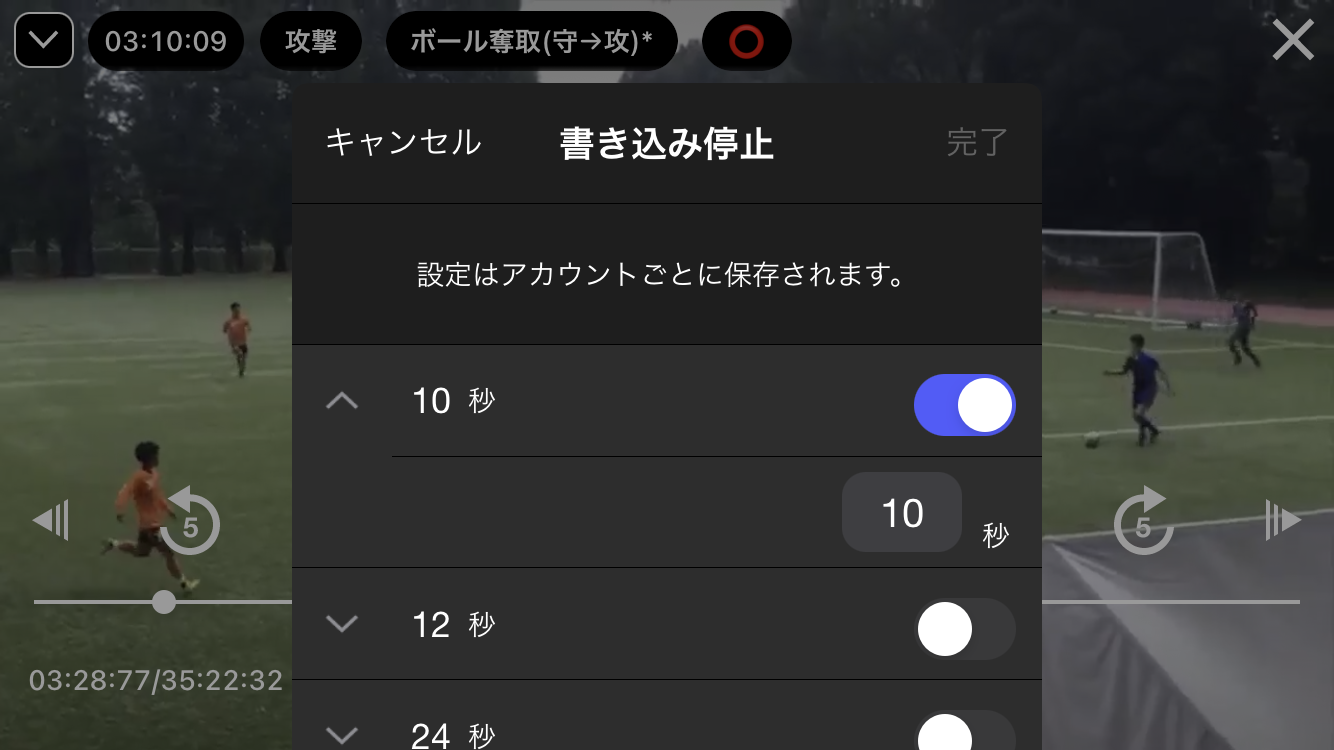 もともと再生画面には自動で書き込み停止する・しないを選べる機能がありました。この機能は、ミーティングなどでその都度見たいシーンで停止ボタンを押す手間を防ぐためのものです。しかし、停止後にふたたび再生することが逆に手間になってしまうことも多く、今回停止時間を自由に設定できるようにしました。