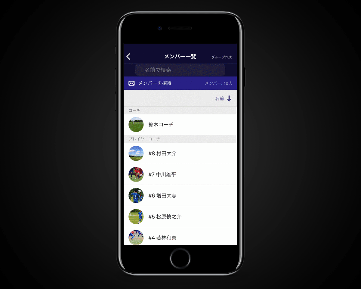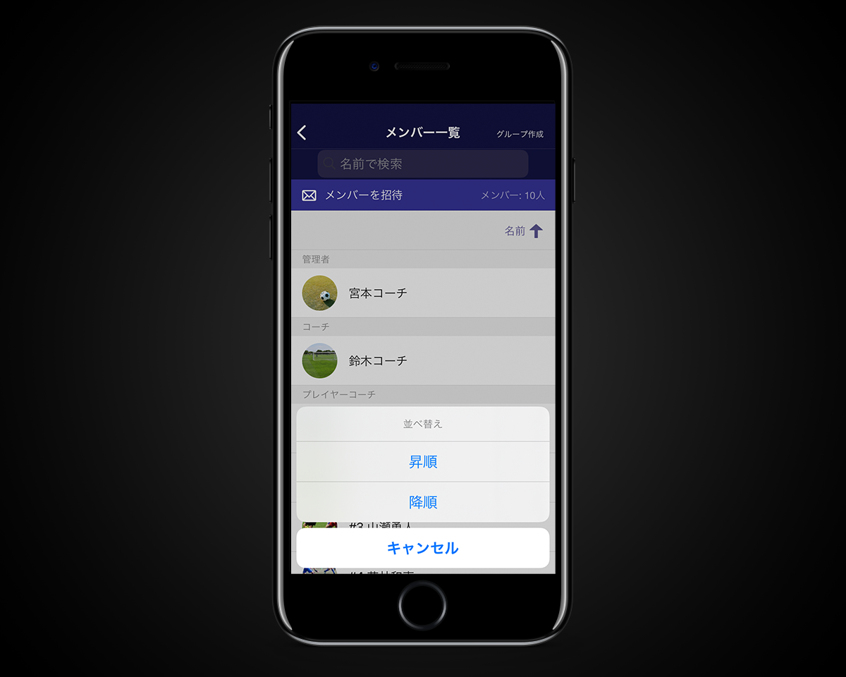 2. メンバー一覧に名前で並べ替え(iOS)